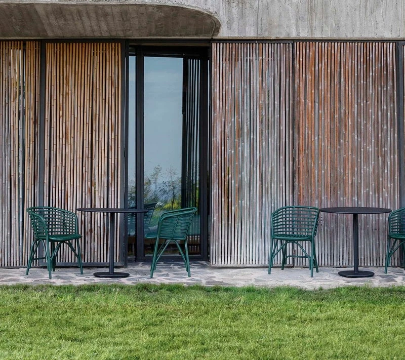 Cane-linen Blend-ulkotuoli tuo hienostuneen lisän kesämökin, terassin tai puutarhan kalustukseen. Foersom & Hiort-Lorenzenin suunnittelema tuoli muistuttaa muotoilultaan rottinkikalusteita tai muita perinteisiä puutarhatuoleja – tosiasiassa se on kuitenkin valmistettu kestävästä ja helppohoitoisesta alumiinista. Terassituolin olemus on moderni ja erottuva, mutta siinä on silti samaan aikaan jotain etäisesti tuttua. Ulkotilojen ohella Blend-tuoli sopii mainiosti käytettäväksi myös sisätiloissa, ja halutessaan siihen saa lisämukavuutta erikseen myytävällä istuintyynyllä.