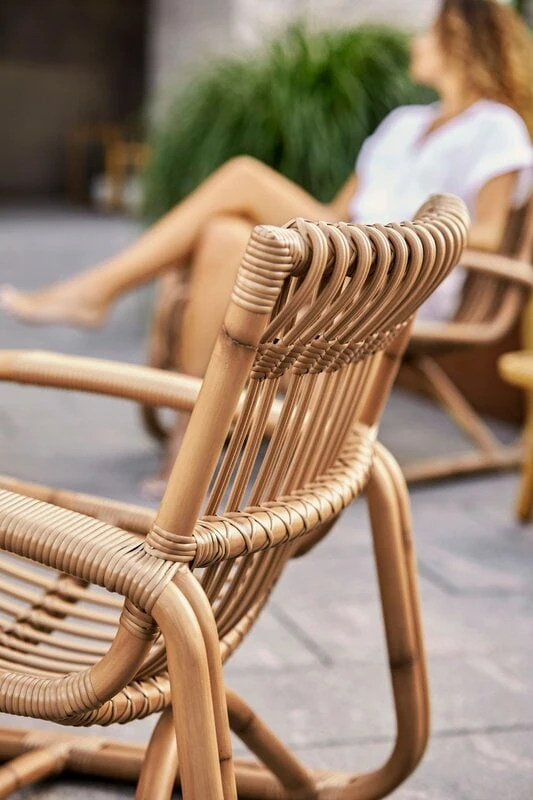 Cane-linen Curve-nojatuolissa yhdistyvät klassinen muotokieli ja käytännöllinen materiaali, jonka ansiosta tuoli sopii sekä sisä- että ulkokäyttöön. Foersom & Hiort-Lorenzenin suunnittelema lepotuoli on valmistettu Cane-linen omasta Cane-line Weave -polyrottingista, joka on materiaalina helppohoitoinen ja joka kestää vaihteleviakin sääolosuhteita haalistumatta tai menettämättä muotoaan. Curve-nojatuoli sopiikin niin olohuoneen kruunuksi kuin parvekkeelle, puutarhaan tai vaikkapa kesämökin terassille.