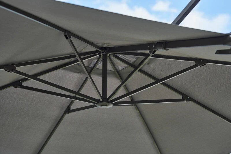Cane-linen Hyde Luxe -aurinkovarjo auttaa luomaan miellyttävän varjoisan keitaan terassille, puutarhaan, uima-altaan vierelle tai muuhun ulkotilaan. Hyde Luxe -aurinkovarjo rakentuu laadukkaasta alumiinisesta tangosta ja kampimekanismista sekä kestävästä, UV-suojatusta polyesterikankaasta. Halutessasi voit kallistaa aurinkovarjon kulmaa mieleiseksesi, joten varjo suojaa myös auringon paistaessa matalammalta. Painava betonijalusta tekee rakenteesta äärimmäisen tukevan ja turvallisen – huomaa kuitenkin, että erityisen kovalla tuulella aurinkovarjo kannattaa aina pitää suljettuna.