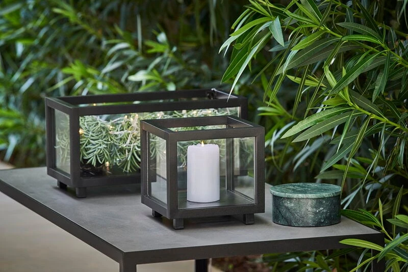 Cane-linen Lightbox on moderni, monikäyttöinen lasilaatikko, joka soveltuu niin kynttilälyhdyksi, säilytyslaatikoksi kuin ulkoruukuksi kasveille tai minikasvihuoneeksi tuoreille yrteille. Lightboxin kulmikas runko on naarmuuntumatonta ja auringossa haalistumatonta alumiinia, ja sen lasipinnoissa on käytetty lujatekoista karkaistua lasia. Lightbox-laatikot ovat pinottavia ja ne sopivat yhteen Cane-linen Lighthouse-lyhtyjen kanssa niin kokonsa kuin ulkomuotonsakin puolesta.