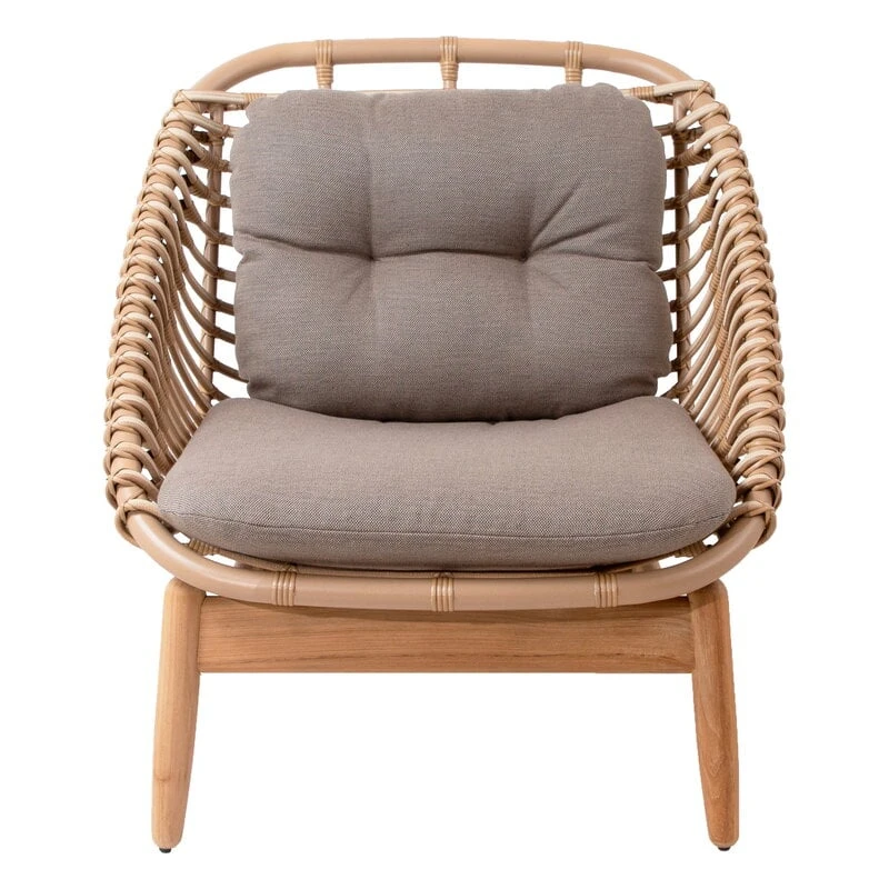 Cane-linen String-nojatuoli ihastuttaa kutsuvalla muotoilullaan puutarhassa ja terassilla – ja mahtuupa siro tuoli vaikka pienemmällekin parvekkeelle! Foersom & Hiort-Lorenzenin suunnittelema nojatuoli koostuu tiikkisistä jaloista, jotka saavat hiljalleen ylleen tiikkipuulle ominaisen hopeanharmaan patinan, sekä niiden päällä lepäävästä polyrottinki-istuimesta, jonka vaihteleva sävy jäljittelee luonnonrottingin elävää pintaa. Kuppimainen istuin on valmistettu Cane-linen omasta Cane-line Weave -polyrottingista, joka säilyttää värinsä ja muotonsa vuodesta toiseen vaihtelevissakin sääolosuhteissa. Kokonaisuuden kruunaavat muhkeat, nopeasti kuivuvalla vaahtomuovilla täytetyt istuintyynyt.