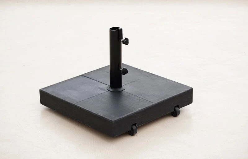 Cane-linen aurinkovarjon jalka on suunniteltu erityisesti Sunshade-sarjan aurinkovarjoille, ja se sopii yhteen muidenkin aurinkovarjojen kanssa, joiden tangon halkaisija on korkeintaan 54 mm. Betonilaatoista valmistetulla jalustalla on painoa peräti 47 kiloa, joten se pitää aurinkovarjon tukevasti paikoillaan tuulisellakin säällä. Vankasta rakenteesta huolimatta jalustaa on helppo liikutella pohjaan integroitujen pyörien ansiosta.