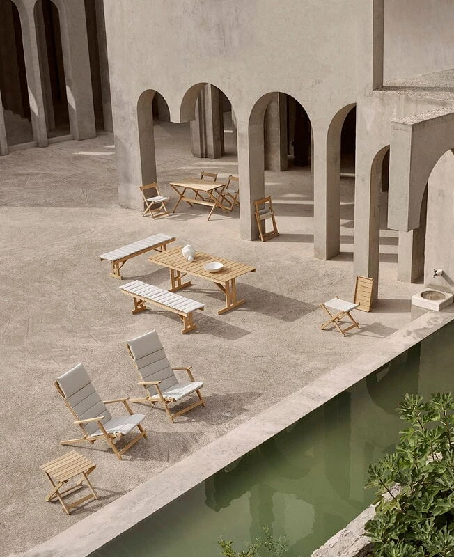 Retkipöytien rentoa estetiikkaa mukaileva pöytä on hurmaava lisä niin puutarhaan kuin kesämökin terassille, ja sen ympärille sopivat monenlaiset istuimet. Kokoontaitettava BM3670-pöytä on myös erinomaisen helppo säilyttää säältä suojassa, sillä taitettuna se mahtuu hyvinkin pieneen tilaan – sarjan kalusteet voi myös säilöä seinälle, kokoelmaan kuuluvan naulakon avulla. Täydennä pöydän ilme Carl Hansen & Sønin BM1871-penkillä ja BM4570-tuoleilla.