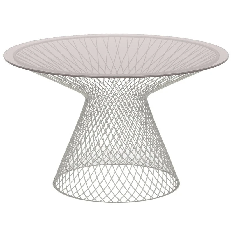 Emun Heaven-pöydän pysäyttävä muotoilu syntyy ilmavan teräskudosrungon ja läpinäkyvän lasikannen luomasta henkäyksen kevyestä vaikutelmasta. Jean-Marie Massaudin suunnitteleman pöydän harmoninen ja elegantti ilme sopii monenlaiseen sisustukseen niin ulkona kuin sisällä.