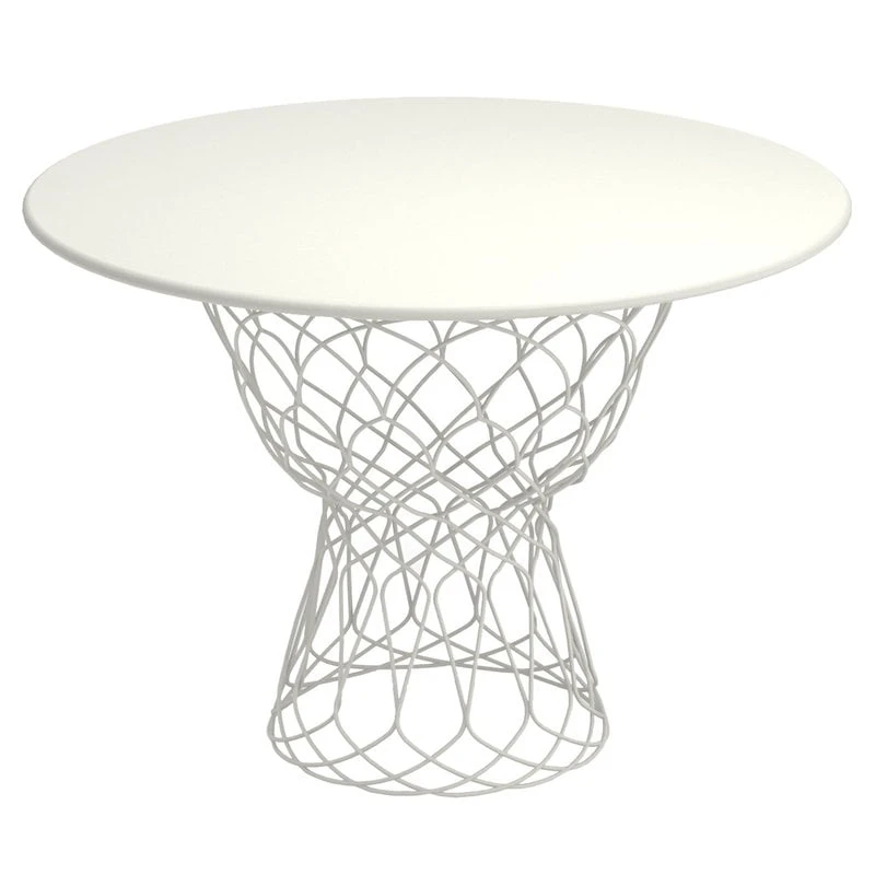 Emun Re-Trouve -pöytä on osa Patricia Urquoilan suunnittelemaa eleganttia ja keskustelua herättävää sarjaa. Pöydän uniikki ilme syntyy toistuvasta graafisesta kuviosta, joka limittyessään itsensä kanssa luo jatkuvasti uusia, yllättäviä yksityiskohtia. Teräksestä valmistettu pöytä sopii niin sisä- kuin ulkotiloihinkin, tuoden mukanaan ripauksen modernia romantiikkaa.