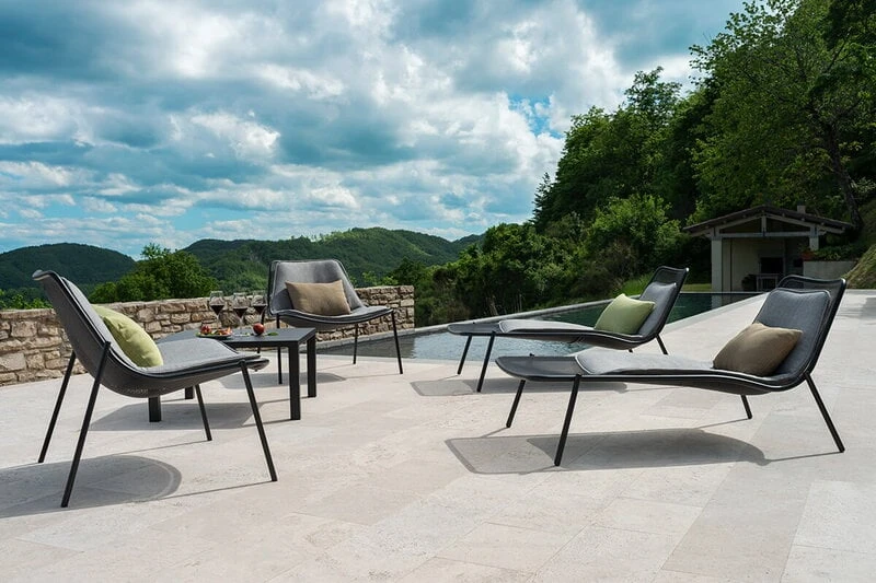 Emun Round-lepotuolin pysäyttävä muotoilu syntyy henkäyksen kevyestä teräskudoksesta ja sitä kehystävästä tukirakenteesta, joka kuin piirtää ilmavalle rungolle hahmon ja ääriviivan. Christophe Pilletin suunnitteleman tuolin pehmeä, pyöristetty muoto kutsuu lepäämään ja viihtymään ja sen elegantti ilme sopii monenlaiseen sisustukseen niin ulkona kuin sisällä.