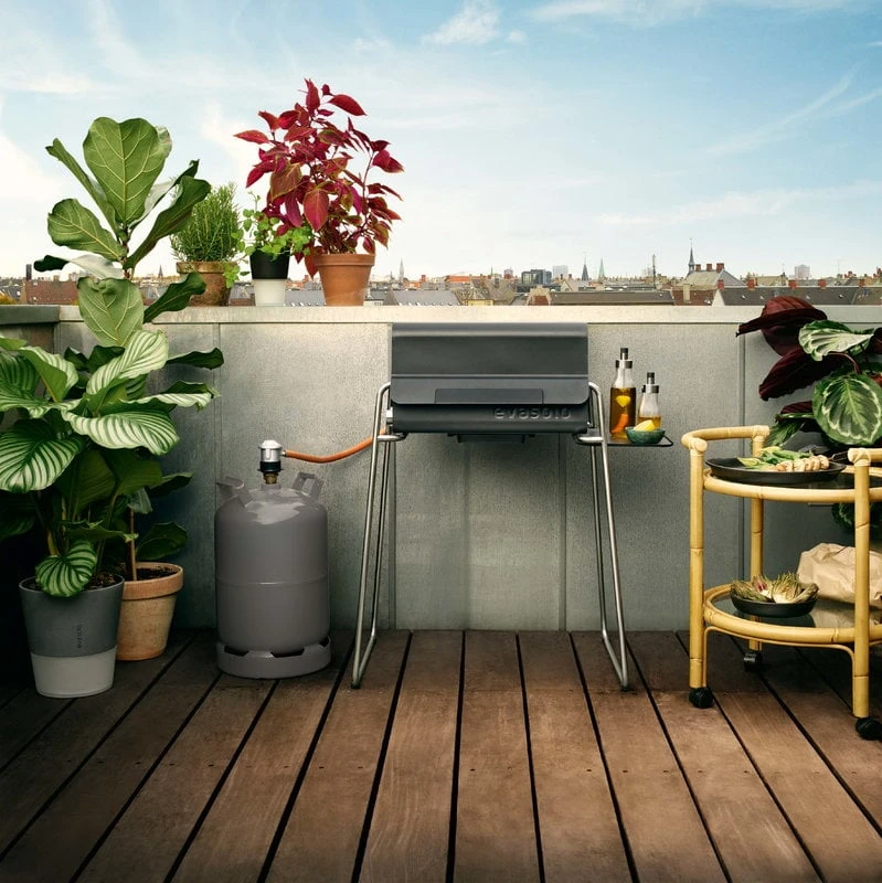 Eva Solon Box-terassigrillille suunnitellut jalat ja sivupöytä muuntavat kompaktin pöytägrillin tukevaksi, itsenäisesti seisovaksi kaasugrilliksi. Ruostumattomasta teräksestä valmistetut jalat antavat Box-grillille siron ja tyylikkään ilmeen, ja himmeän musta sivupöytä tarjoaa kätevän lisätilan grillausvälineille sekä grillausvuoroaan odottaville herkuille.