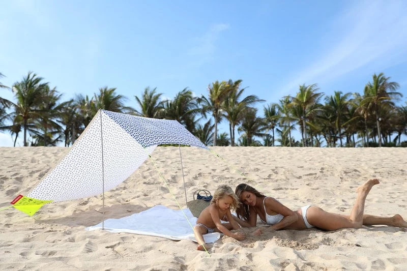 Fatboyn Miasun-rantateltta on täydellinen koko perheen kumppani rannalle, puistoon ja piknikeille. Puuvillakanvaksesta ja alumiinituista koostuva taiteltava aurinkosuoja vie hämmästyttävän vähän tilaa ja painaa hämmästyttävän vähän – vain reilun kilon! Miasun-aurinkosuoja on mahdollista kasata kolmella eri tavalla; sen kasaaminen on helppoa ja nopeaa riippumatta siitä, millä tavalla haluat sen pystyttää. Ja mikä parasta: avoimen rakenteensa ansiosta Miasun suojaa sinua paahtavan auringon kuumuudelta ja haitallisilta UV-säteiltä, mutta antaa silti lempeän tuulenvireen puhaltaa ihollasi! Miasun-rantateltan alle mahtuu suojaan jopa kaksi aikuista ja kaksi lasta.