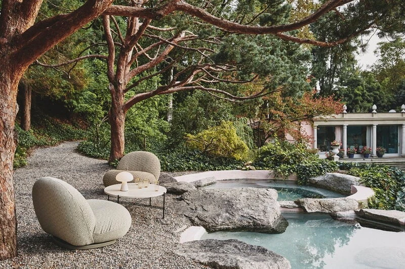 GUBIn Pacha Outdoor -nojatuoli on ulkokäyttöön soveltuva versio ranskalaisen Pierre Paulinin suunnittelemasta tuoliklassikosta vuodelta 1975. Lepotuolin yltäkylläisen kutsuva muoto takaa mukavan istuma-asennon, ja sen ystävällinen, pelkistetty siluetti sopii monenlaisten puutarhakalusteiden kumppaniksi.