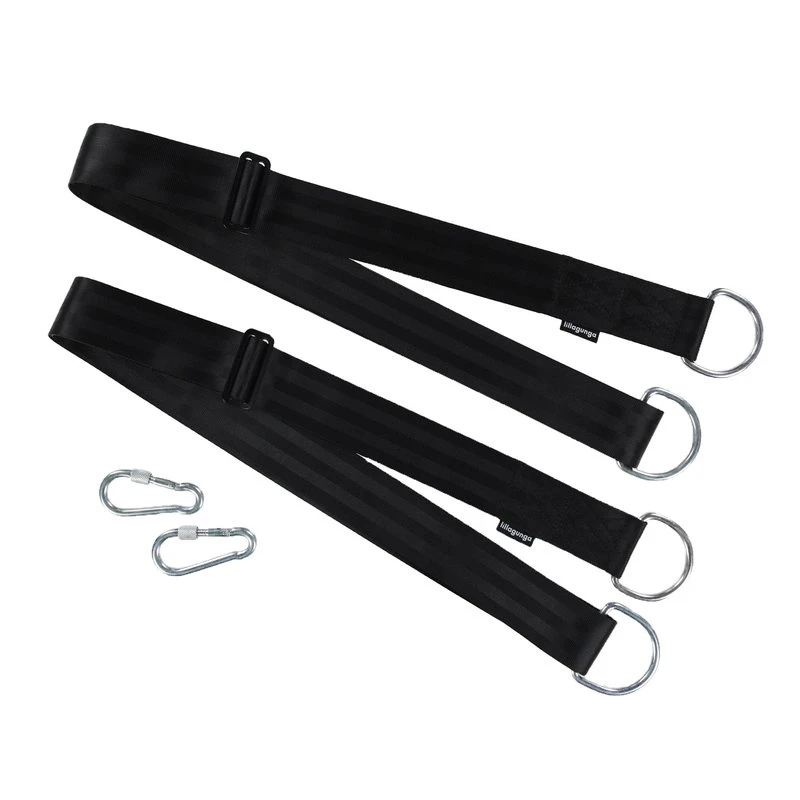 Lillagungan keinun kiinnityshihnat mahdollistavat Lillagunga Classic Outdoor -keinun kiinnittämisen puuhun tai muuhun sopivaan palkkiin pihalla. Pakkaukseen kuuluu kaksi kestävää hihnaa, joiden pituutta on mahdollista säätää oksan paksuuden tai halutun korkeuden mukaan.