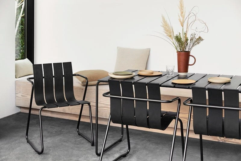Ocean-puutarhapöytä on tanskalaisen Materin uudelleentulkinta Nanna & Jørgen Ditzelin vuonna 1955 suunnittelemista ulkokalusteista. Sulavan muodon lisäksi Ocean-kalusteista tekee poikkeuksellisen niiden materiaali: kalusteet on valmistettu valtameristä peräisin olevasta muovijätteestä sekä vanhoista kalaverkoista. Ocean-sarjan istuimet ja pöytälevyt rakentuvat lujista kierrätysmuovisäleistä, ja ilmavan muotokielen viimeistelee tummaksi maalattu metallirunko. Kalusteiden kaikki osat pystyy aikanaan kierrättämään eteenpäin. Ocean-kokoelma palkittiin Wallpaper*-lehden muotoilupalkinnolla vuonna 2019.