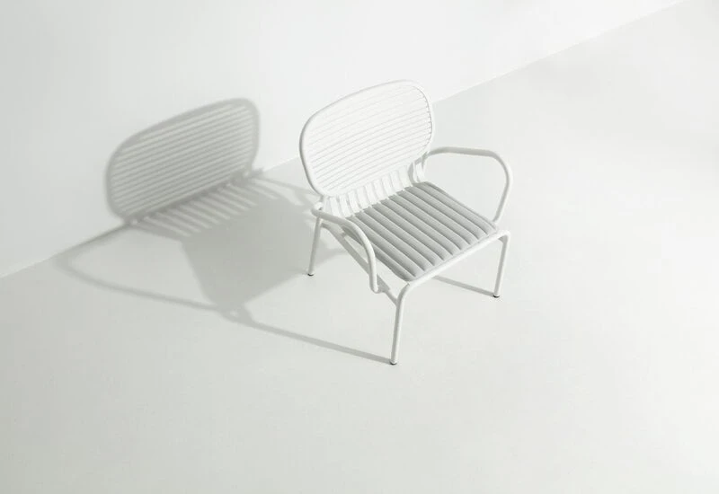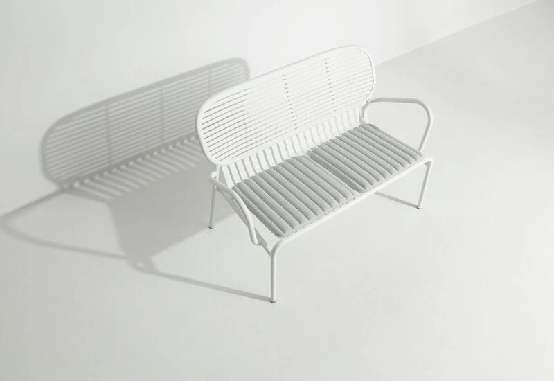 Muotoilijaduo BrichetZieglerin suunnitteleman Week-end-kokoelman puutarhakalusteet yhdistelevät erilaisia geometrisia muotoja käytännölliseen nykydesigniin. Alumiinista valmistetut kalusteet ovat rakenteeltaan sekä kevyitä että kestäviä, eikä niiden epoksimaalattu mattapinta säikähdä paahtavaa aurinkoa tai rankkasadetta. Monipuoliseen Week-end-sarjaan kuuluu monen kokoisia ja värisiä pöytiä, tuoleja ja penkkejä sekä suuriin puutarhoihin että pienille parvekkeille. Siron ulkomuotonsa ansiosta kalusteet sopivat myös sisätiloihin.