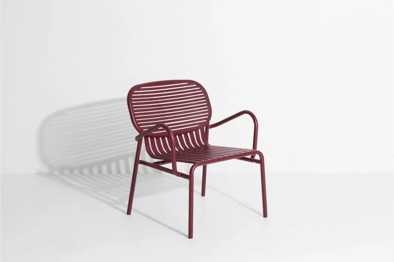 Week-end-nojatuoli on osa ranskalaisen Petite Frituren alumiinisten ulkokalusteiden kokoelmaa. Viehättävien Weekend-tuolien tunnistettavimpiin piirteisiin kuuluvat niiden selkänojien ovaalinmuotoiset yksityiskohdat sekä vaaka- ja pystysuorien linjojen vuorottelu. Kaikki kokoelman tuolit ovat pinottavia.