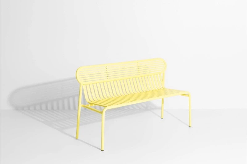 Week-end-penkki on osa ranskalaisen Petite Frituren alumiinisten ulkokalusteiden kokoelmaa. Week-end-penkin tunnistettavimpiin piirteisiin kuuluvat sen selkänojan ovaalinmuotoiset yksityiskohdat sekä vaaka- ja pystysuorien linjojen vuorottelu. Linjakkaasti muotoiltu, ulkokäyttöön suunniteltu penkki sopii sulavasti yhteen saman sarjan pöytien kanssa.