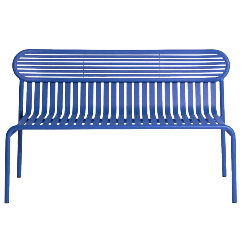 Week-end-penkki on osa ranskalaisen Petite Frituren alumiinisten ulkokalusteiden kokoelmaa. Week-end-penkin tunnistettavimpiin piirteisiin kuuluvat sen selkänojan ovaalinmuotoiset yksityiskohdat sekä vaaka- ja pystysuorien linjojen vuorottelu. Linjakkaasti muotoiltu, ulkokäyttöön suunniteltu penkki sopii sulavasti yhteen saman sarjan pöytien kanssa.