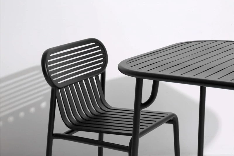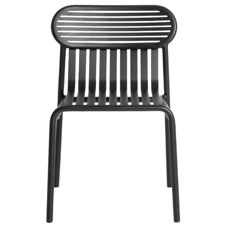 Week-end-tuoli on osa ranskalaisen Petite Frituren alumiinisten ulkokalusteiden kokoelmaa. Viehättävien Weekend-tuolien tunnistettavimpiin piirteisiin kuuluvat niiden selkänojien ovaalinmuotoiset yksityiskohdat sekä vaaka- ja pystysuorien linjojen vuorottelu. Kaikki kokoelman tuolit ovat pinottavia.