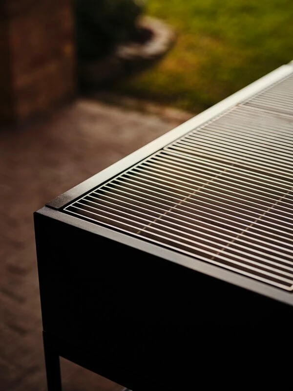 Röshultsin Module-sarjan 100 cm leveä hiiligrilli on suunniteltu vaativan makuun ja tavallista suurempiin grillijuhliin. Ruostumattomasta teräksestä valmistetun, miellyttävän yksinkertaisesti muotoillun grillin avulla saat ruokiin aidon hiiligrillin maun. Voit säädellä grillauslämpötilaa asettamalla hiilitasot sopivalle korkeudelle ennen grillin sytytystä. Täydennä kokonaisuus Module-kokoelman muilla moduuleilla.