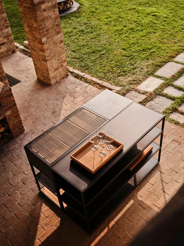 Ruotsalaisen Röshultsin Module-sarjan moduulien avulla voit koota juuri omiin tarpeisiisi sopivan kesäkeittiön. Ulkokäyttöä kestävistä materiaaleista valmistetut moduulit ovat muotokieleltään yhtenäisiä ja hienostuneen hallittuja. Broberg & Ridderstrålen suunnittelemat moduulit sopivat yhteen Röshultsin Open Kitchen- ja Kitchen Island -runkojen kanssa.