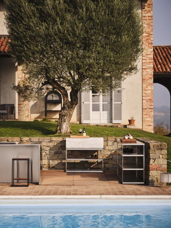 Röshultsin Module Marble -työtaso on suunniteltu vaativaan makuun. Italialaisesta Carraran marmorista valmistettu, veistoksellisen elegantti työtasomoduuli tuo kesäkeittiöösi lisää tilaa ruoanlaitolle ja seurustelulle. Täydennä kokonaisuus Module-kokoelman muilla moduuleilla.