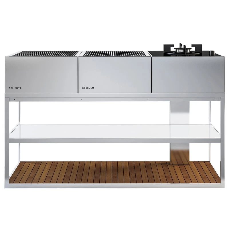 Röshultsin modulaariseen Open Kitchen -kokoelmaan kuuluu ulkokäyttöön suunnitelluista huippulaatuisista materiaaleista valmistettuja runkoja, laatikostoja ja apupöytiä, joita voit yhdistellä vapaasti keskenään. Valitse mieleisesi osat ja yhdistä ne Module-sarjan grilleihin ja muihin moduuleihin – unelmiesi kesäkeittiö on valmis. Open Kitchen -kokoelman on suunnitellut Broberg & Ridderstråle.