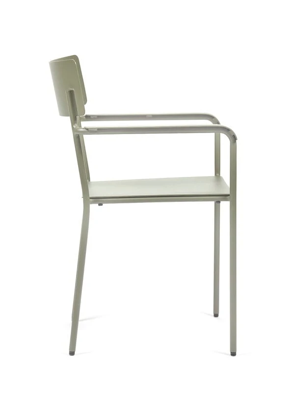 Seraxin August-tuoli on valmistettu jauhemaalatusta alumiinista, ja se sopii sekä sisä- että ulkokäyttöön. Kapea ja korkeahko käsinojallinen tuoli sopii niin puutarhatuoliksi ulkona kuin ruokapöydän tai työpöydän ääreen sisätiloissa.