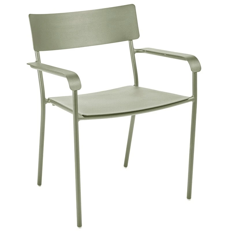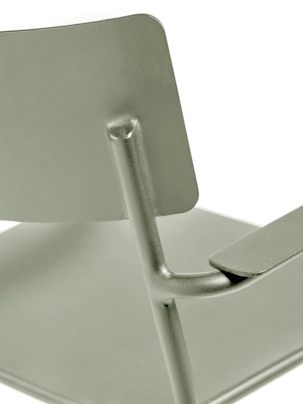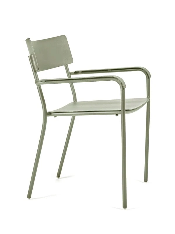 Seraxin August-tuoli on valmistettu jauhemaalatusta alumiinista, ja se sopii sekä sisä- että ulkokäyttöön. Leveä ja matalahko käsinojallinen tuoli sopii niin puutarhatuoliksi ulkona kuin ruokapöydän tai työpöydän ääreen sisätiloissa.