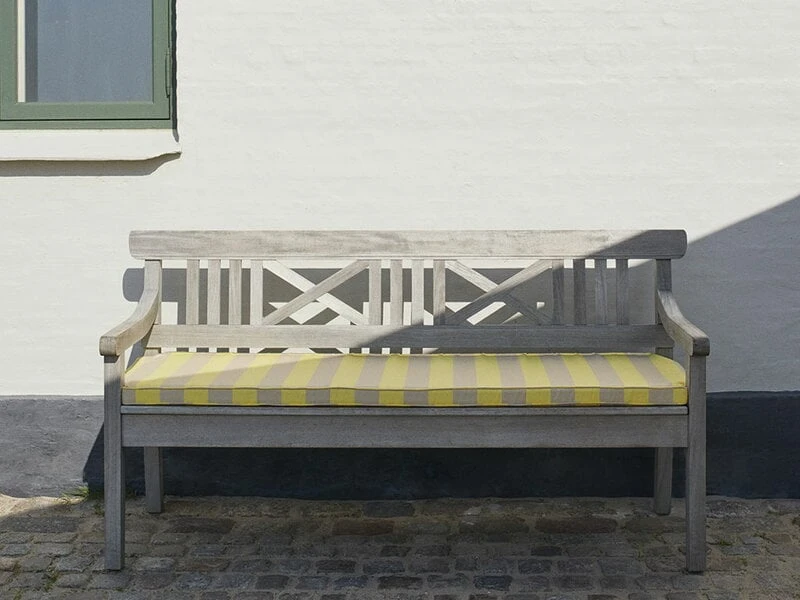 Skagerakin Drachmann-istuintyynyllä viimeistelet puutarhapenkkisi istuinmukavuuden! Raidallinen istuinpehmuste julkaistiin vuonna 2022 Drachmann-sarjan 40-vuotisjuhlan kunniaksi.