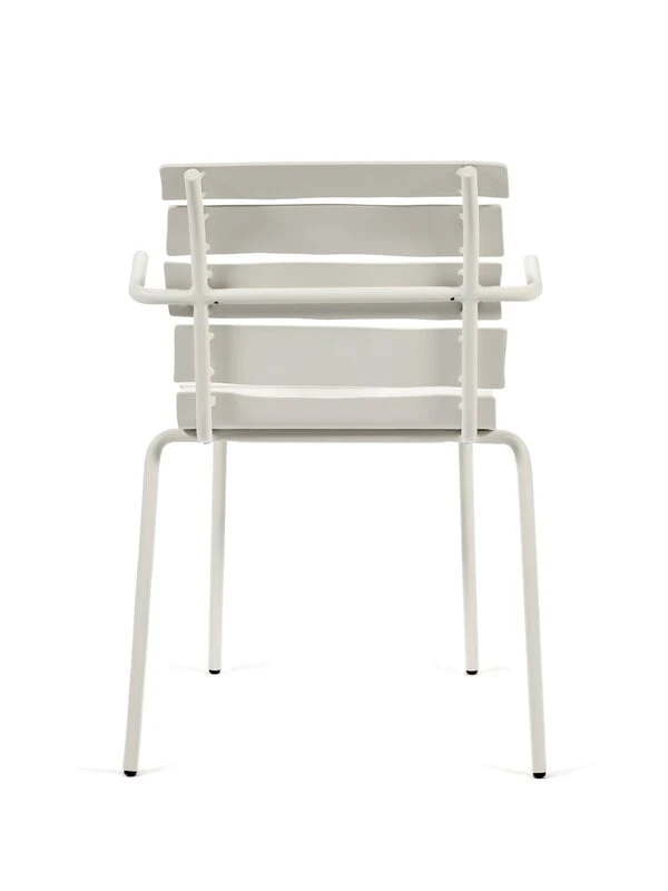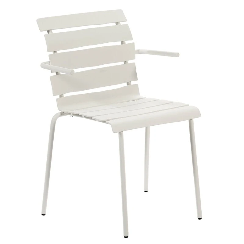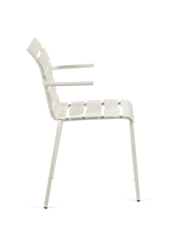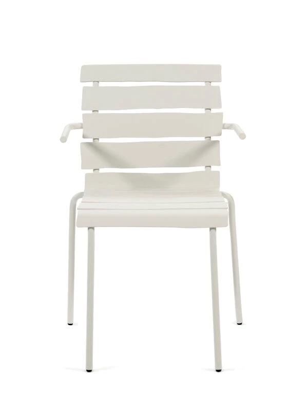 valerie objectsin käsinojallisen Aligned-tuolin näennäisen yksinkertainen ilme yllättää: epäsymmetriset, alumiinista valmistetut säleet antavat klassisen vähäeleiselle puutarhatuolille täysin uudenlaisen persoonan. Tunnetun hollantilaissuunnittelija Maarten Baasin kekseliäs ja leikkisä kädenjälki on vahvasti esillä jokaisessa yksityiskohdassa – Aligned-tuoli on luotu täsmällisesti Baasin lyijykynäpiirroksen pohjalta. Kaunis ja kestävä ulkokäyttöön soveltuva käsinojallinen tuoli sopii niin puutarhapöydän ääreen kuin kesämökin terassillekin ja sen hurmaavan persoonallinen ilme ihastuttaa vuodesta toiseen.
